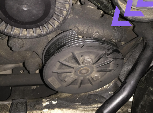 Over time your engine mounts wear out. When this happens there is a high likelihood that the plastic Power-Steering Pulley will hit the subframe and chatter into pieces. Again, the belt will come off and likely work itself thru the crank seal into your oil pan.